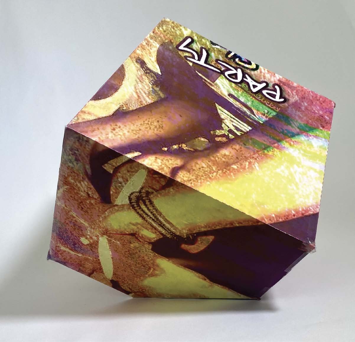 Instead of designing a standard record sleeve— rectangular and basically flat— I wanted a package design that was unique, 3-dimensional, and could stand on its own. After creating various prototypes with different shapes,I decided on a “vinyl cube”.